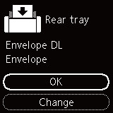 Dacă dimensiunea de pagină şi tipul de suport afişate pe LCD se potrivesc cu dimensiunea şi tipul plicurilor încărcate în tava din spate, selectaţi OK.
