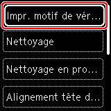 Imprimez le motif de vérification des buses afin de déterminer si l'encre s'écoule correctement de la buse de tête d'impression.