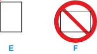 Papir uvijek umećite okomito (E). Vodoravno (F) umetanje može uzrokovati zaglavljivanje papira.