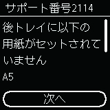 - 例えば、印刷するときの用紙サイズの設定がA5サイズで、給紙時にA4サイズと設定していた場合、後トレイの用紙をA5サイズの用紙に交換してから印刷します。