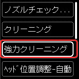 プリントヘッドのクリーニングを行っても効果がない場合は、強力クリーニングを行ってください。強力クリーニングは、通常のクリーニングよりインクを消耗しますので、必要な場合のみ行ってください。