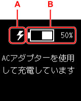 A:バッテリーの状態により、以下のアイコンが表示されます。
