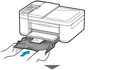Uchopte pravou a levou stranu předního krytu a zatlačte kazetu dozadu, dokud není šipka (