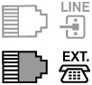 Sørg for, at printeren er slukket, når du slutter telefonen til printeren, slut den ene ende af det modulære kabel til stikket til ekstern enhed ved mærket "EXT." på printeren. Slut derefter den anden ende til telefonstikket på telefonen.
