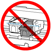 Vidinės spausdintuvo dalys gali būti išteptos rašalu. Keisdami kasetę FINE stenkitės neišsitepti rankų arba drabužių. Rašalą nuo vidinių spausdintuvo dalių galite nesunkiai nuvalyti popierine servetėle ar kt.