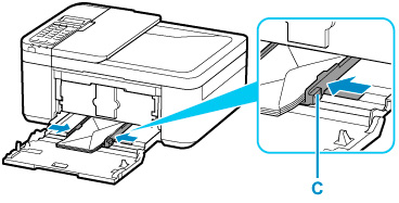 Bruk høyre papirfører (C) for å skyve begge papirførerne helt ut.