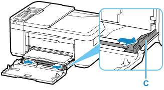 Använd den högra pappersledaren (C) för att skjuta ut båda pappersledarna hela vägen.