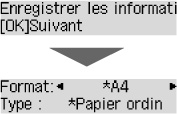L'écran d'enregistrement des informations sur le papier de la cassette s'affiche après le remplacement du papier. Enregistrez les informations sur le papier en fonction du papier que vous avez chargé.