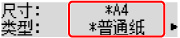 装入纸张时,LCD屏幕上将显示纸张信息的注册屏幕。 将尺寸:选择为A4或Letter,并将类型:选择为普通纸,然后按OK按钮。
