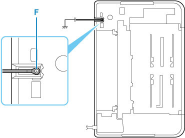连接地线时,用螺丝钉将其与位于本机底部的框架接地(F)固定。安装打印机时,请务必小心不要使打印机压毁地线。