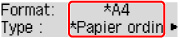 Lorsque vous chargez du papier, l'écran d'enregistrement des informations sur le papier s'affiche sur l'écran LCD. Sélectionnez A4 ou Lettre pour Format: et Papier ordin pour Type :, puis appuyez sur le bouton OK.