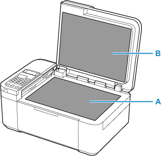 Pažljivo obrišite kopirno staklo (A) i unutarnju stranu poklopca dokumenta (B).