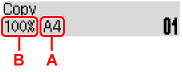 Confirmaţi dimensiunea paginii (A) şi gradul de mărire/micşorare (B).