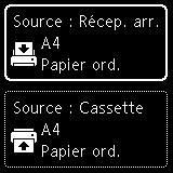 Sélectionnez une alimentation papier (réceptacle arrière / cassette) dans laquelle le papier est chargé.