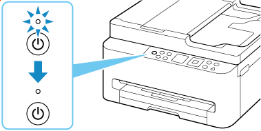 Při odpojení napájecího kabelu stiskněte tlačítko ZAPNOUT (ON) a poté ověřte, že nesvítí kontrolka ZAPNOUT (ON). Odpojení napájecího kabelu, když svítí nebo bliká kontrolka ZAPNOUT (ON), může způsobit vyschnutí nebo ucpání tiskové hlavy a snížení kvality tisku.