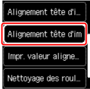 Pour imprimer et vérifier les valeurs d'alignement actuelles de la tête d'impression, sélectionnez Impr. valeur alignement de tête.