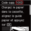 Si une erreur se produit pendant l'impression, par exemple lorsque l'imprimante vient à manquer de papier ou en cas de bourrage papier, un message de dépannage s'affiche automatiquement. Pour certaines erreurs, un code de support (numéro de l'erreur) s'affiche également.