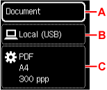 Dans le cas d'un ordinateur connecté à l'aide d'un câble USB, sélectionnez Local (USB) ; pour un ordinateur connecté au réseau, sélectionnez l'ordinateur vers lequel transférer les données numérisées.