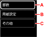 B:現在設定されている用紙のサイズと種類を確認できます。