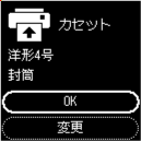 カセットを差し込むと、液晶モニターにカセットの用紙の設定を確認する画面が表示されます。