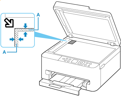 ID-kartico položite na stekleno ploščo s sprednjo stranjo obrnjeno navzdol, pri čemer pustite 2 mm (0,08 palca) ali več prostora med robovi (območje, označeno z diagonalnimi črtami (A)) steklene plošče.