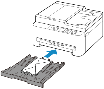 Ovojnice naložite v pokončni postavitvi tako, DA BO STRAN, NA KATERO ŽELITE TISKATI, OBRNJENA NAVZDOL, in jih postavite na sredino kasete.