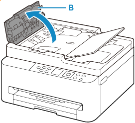 Odprite pokrov podajalnika dokumentov (B).