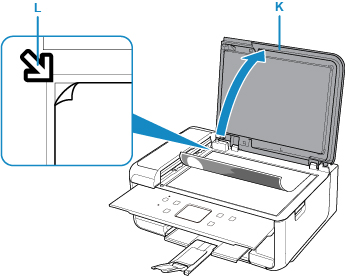 Vložte originál KOPÍROVANOU STRANOU DOLŮ a zarovnejte jej se značkou pro zarovnání (L).