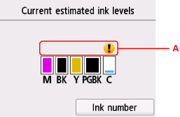 Odhadovaná hl. inkoustu (Estimated ink levels).Pokud jsou k dispozici informace o zbývající hladině inkoustu, zobrazí se v oblasti (A) symbol.