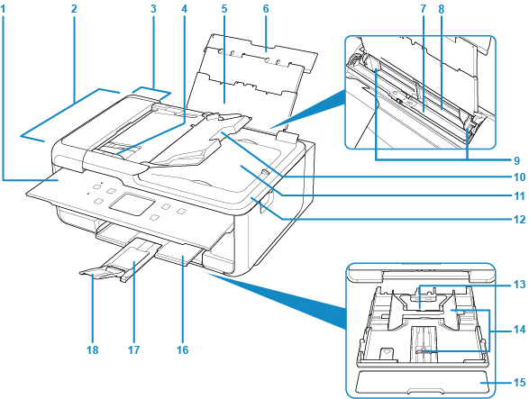 - (3) dæksel til dokumentføder