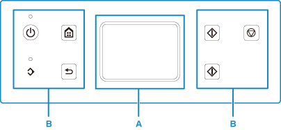 El panel de control consta de una pantalla táctil (A) y varios botones (B).