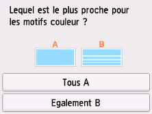 Sur l'écran de confirmation, sélectionnez le motif le plus proche du motif de vérification des buses imprimé.