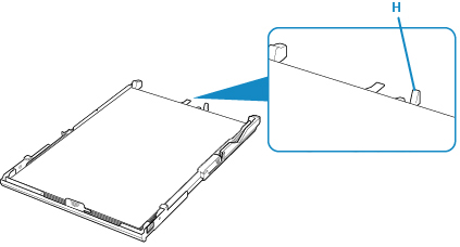 Hvis papirbunken berører delen som stikker frem (H), kan det hende at papiret ikke blir matet riktig.