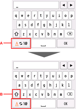 На принтері доступні два режими вводу: один для літер, а інший — для цифр і символів. Для перемикання між режимами торкніться елемента