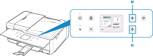 15. 用紙の設定を確認して、モノクロボタン(M)またはカラーボタン(N)を押す