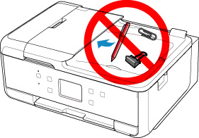 Внимавайте да не позволите нещо да влезе в изходното гнездо за документи. Това може да причини повреда.