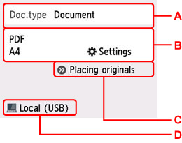 Valige USB-ühendusega arvuti puhul suvand Kohalik (USB) (Local (USB)) või valige arvuti, kuhu edastada skannitud andmed võrguühendusega arvuti puhul.