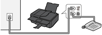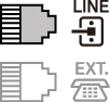 Kui ühendate telefoni printeriga, siis veenduge, et printer oleks välja lülitatud, ühendage modulaarse kaabli üks ots välisseadme pistikupessa, mis asub printeri tähise „EXT.“ lähedal, seejärel ühendage teine ots telefoni telefoniliini pistikupessa.