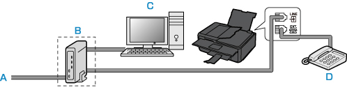 Need on näited ning ei ole tagatud, et need sobiks kõigi ühendamistingimustega. Lisateavet vaadake printeriga ühendatava võrguseadmega (juhtseadmed, nagu xDSL-i (Digital Subscriber Line – digitaalne abonendiliin) modem või terminaliadapter) kaasas olnud kasutusjuhendist.