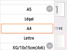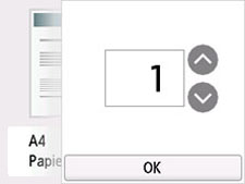 pour spécifier le nombre de copies.Si vous gardez le doigt appuyé, le nombre défile par 10.
