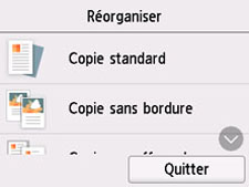 Vous pouvez réorganiser l'ordre d'affichage du menu de copie.