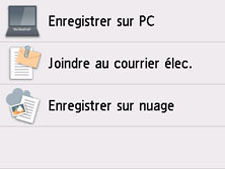 Numériser dans l'écran ACCUEIL.L'écran permettant de sélectionner l'emplacement dans lequel enregistrer les données s'affiche.