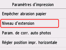 Cette section présente la procédure à suivre pour modifier les paramètres de l'écran Paramètres périphérique, les étapes permettant de spécifier Niveau d'extension étant utilisées à titre d'exemple.