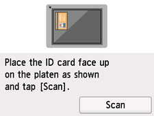 Puneţi cartea de identitate cu partea posterioară orientată în jos pe platou, urmând instrucţiunile de pe ecran şi selectaţi Scanare (Scan).
