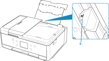 Glisaţi ghidajul pentru hârtie (D) din dreapta pentru a deschide ambele ghidaje pentru hârtie.