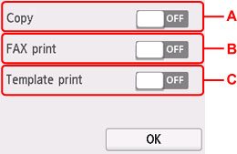 • B: Selectând ACTIV (ON), se permite imprimantei să pornească automat când se trimit la imprimantă date de imprimare sau o comandă de scanare de la un computer.