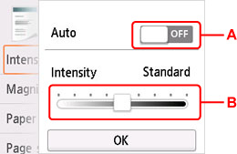 • A: Valige automaatse intensiivsuse reguleerimise aktiveerimiseks/inaktiveerimiseks.