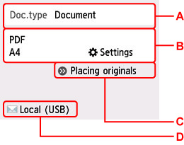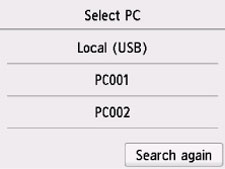 Valige USB-ühendusega arvuti puhul suvand Kohalik (USB) (Local (USB)) või valige arvuti, kuhu edastada skannitud andmed võrguühendusega arvuti puhul.