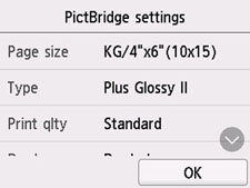 Avaneb kuva PictBridge'i määrangud (PictBridge settings). Saate muuta prindikvaliteeti, kui prindite otse PictBridge’iga (Wi-Fi) ühilduvast seadmest.