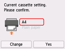 Dacă dimensiunea de pagină de pe ecranul senzitiv corespunde cu dimensiunea hârtiei încărcate în casetă, selectaţi Da (Yes).
